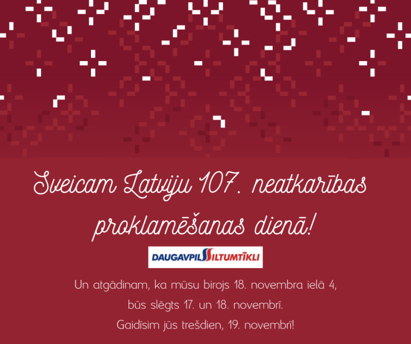 17. un 18. novembrī mūsu birojs 18. novembra ielā 4 būs slēgts.